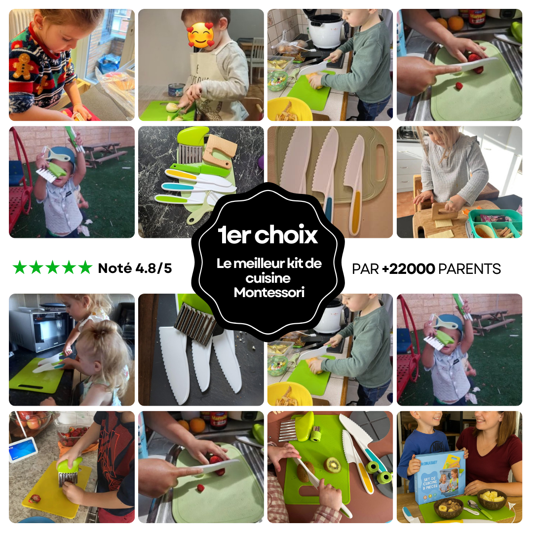 Avec le kit de cuisine Montessori MOMABABY, vos enfants découvrent la joie de cuisiner sans aucun danger et vous profitez enfin de moments complices en famille.